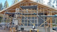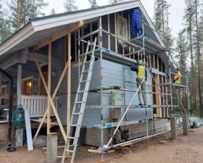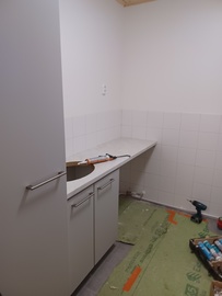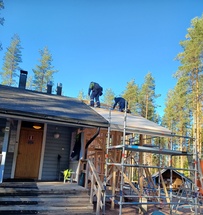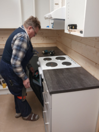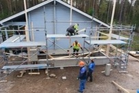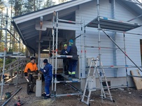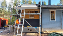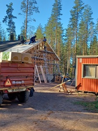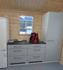 Ulkoilumajan laajennushanke 2024, jossa keittiötilat ovat laajentuneet ja wc.